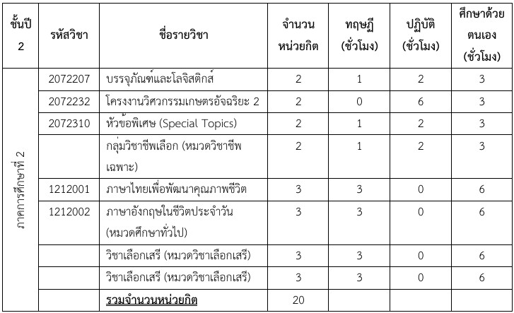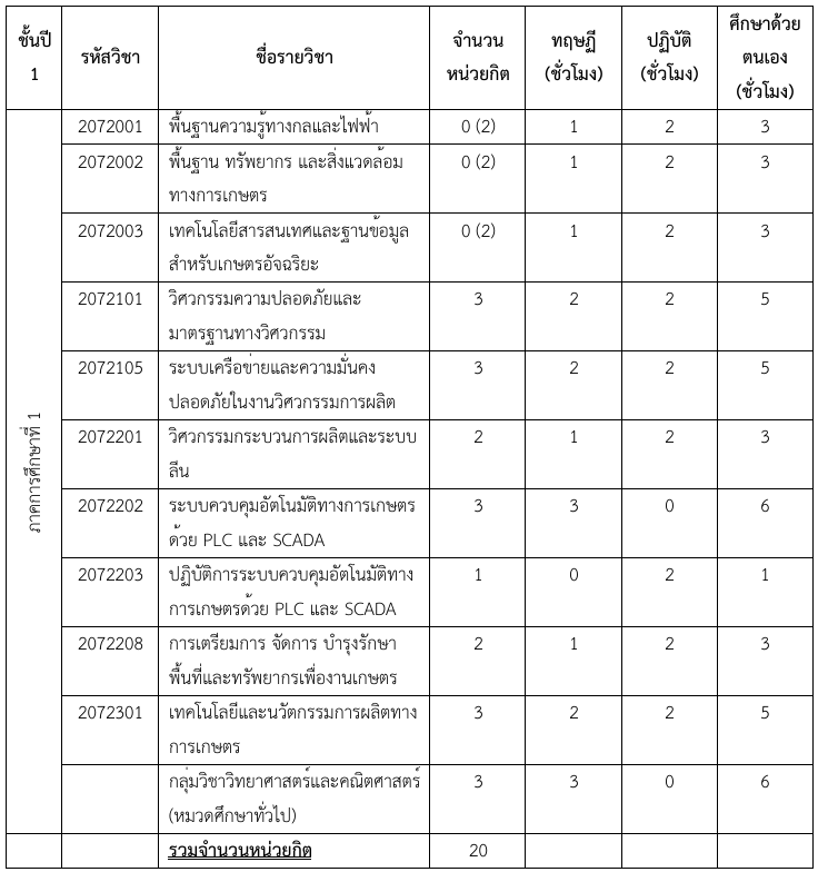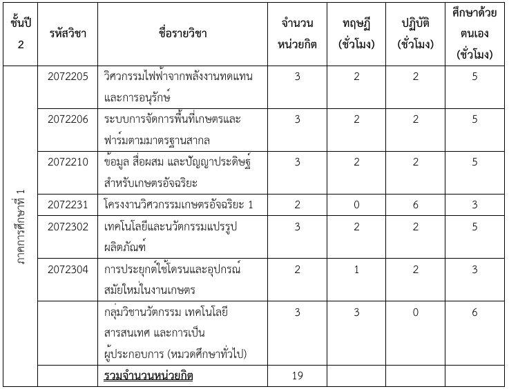 ภาษาไทย : วิศวกรรมศาสตรบัณฑิต (วิศวกรรมเกษตรอัจฉริยะ)